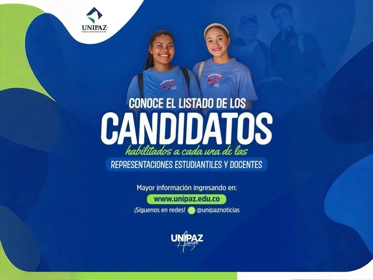 La Secretaría General del Instituto Universitario de la Paz -UNIPAZ- ha completado el proceso de verificación del cumplimiento de requisitos por parte de los candidatos que participarán en la próxima Elección de Representantes de los Estudiantes y Docentes ante los Consejos Académico y de Escuelas.