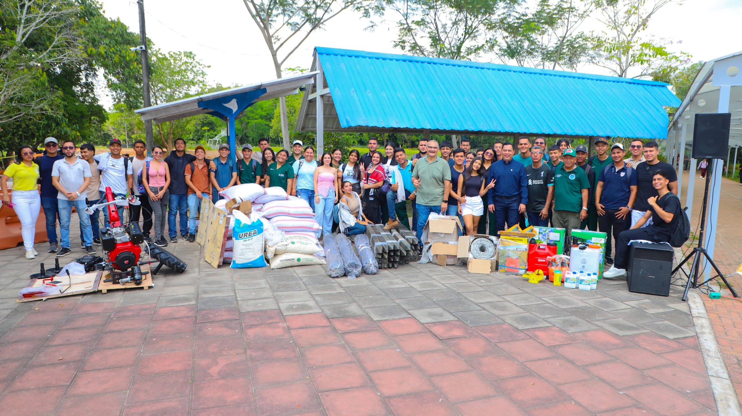 Estudiantes y docentes del programa de Ingeniería Agronómica del Instituto Universitario de la Paz -UNIPAZ-, recibieron la dotación de herramientas manuales, maquinaria e insumos agropecuarios que fortalecerá la ejecución del proyecto Fortalecimiento Productivo de los Sistemas Integrados de Producción Agrícola, espacios de aprendizaje y prácticas en el Centro de Investigaciones Santa Lucía.